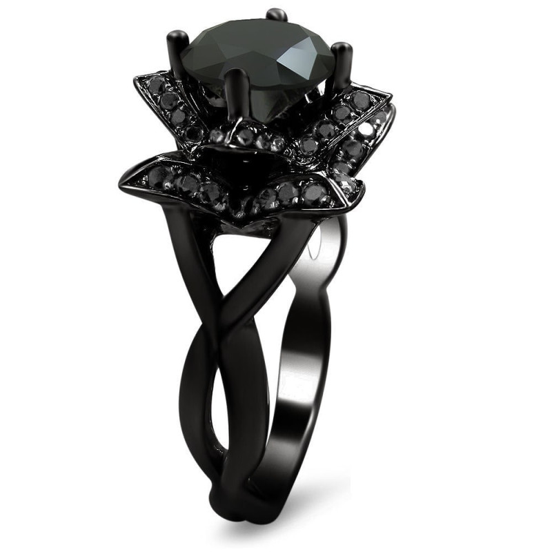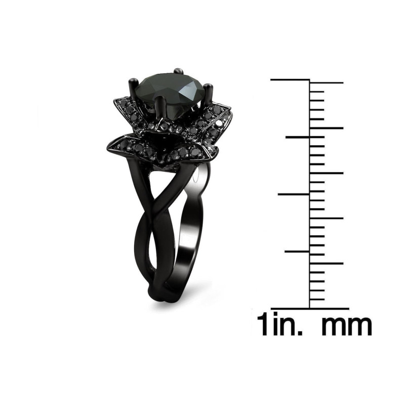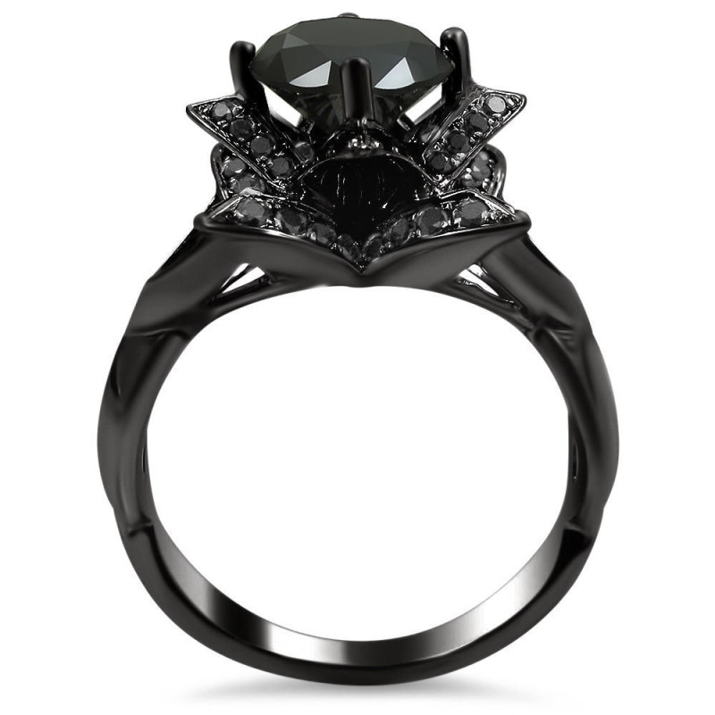 Black Gold 2 1/3ct TDW Black Diamond Lotus Engagement Ring<li>black rhodium-plated gold jewelry - Handcrafted By Name My Rings™